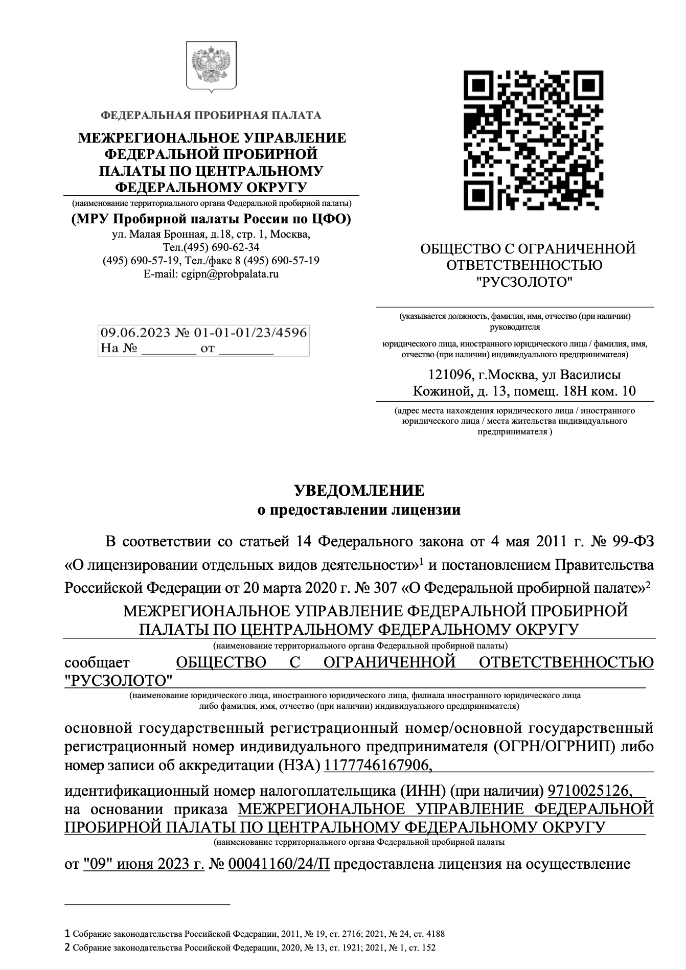 Для получения выписки из реестра лицензий, наведите камеру на qr-код из Уведомления
